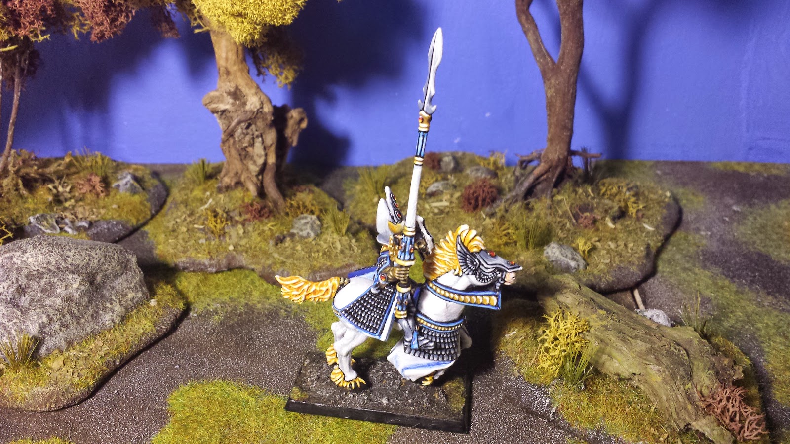 Un proyecto que tengo eternamente a medias es el de pintar las miniaturas que me han regalado. Siempre que alguien que conoce mi punto debil me regala alguna figura, prometo pintarla en breve pero la realidad es que casi siempre el regalo coincide con algun proyecto a medias, y esas figuras que con tanto cariño me han obsequiado se quedan la mayoria de veces en sus cajas esperando durante años a que algun dia me decida a darles un poco de color. Entre esas espinas que tengo clavadas destacan un par de cajas a las que tenia ganas de meterles mano pero no me encajaban en ningun proyecto: una caja de principes dragon de los Altos Elfos y un carro de leones/caballos de la misma facción de Warhammer.
